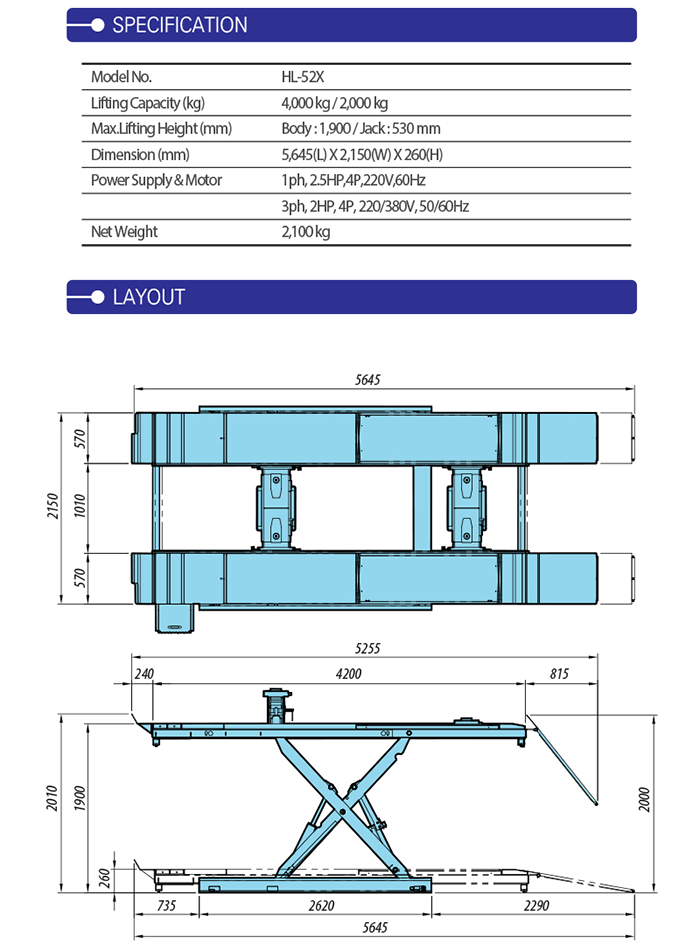 Cầu nâng cắt kéo 4 tấn Heshbon HL-52X