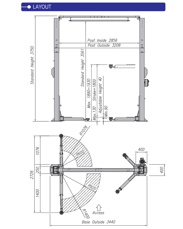 Chiều cao nâng tối đa (mm): 1,890mm ~ 1,930mm